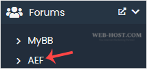 4. On the left side, locate the Forums category. Click on it and then on the AEF link that appears.